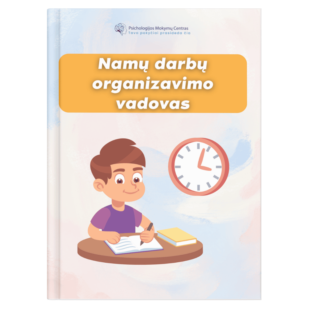 NAMŲ DARBŲ ORGANIZAVIMO VADOVAS: šis „Namų darbų organizavimo vadovas“ sukurtas siekiant padėti vaikams su ADHD išlaikyti dėmesį mokantis ir valdyti laiką. Jis padeda suskaidyti dideles užduotis į mažesnes dalis, suteikia struktūrą ir aiškumą, padeda planuoti bei stebėti mokymosi pažangą, taip didėja vaiko motyvacija ir pasitikėjimas savimi.