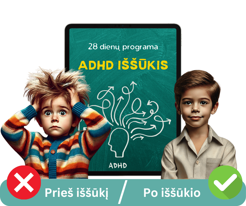 ✅ Iššūkio metu gausite svarbiausias tėvystės strategijas, kurios padės jūsų vaikui su ADHD suvaldyti impulsyvius protrūkius, tapti labiau koncentruotu ir organizuotu.