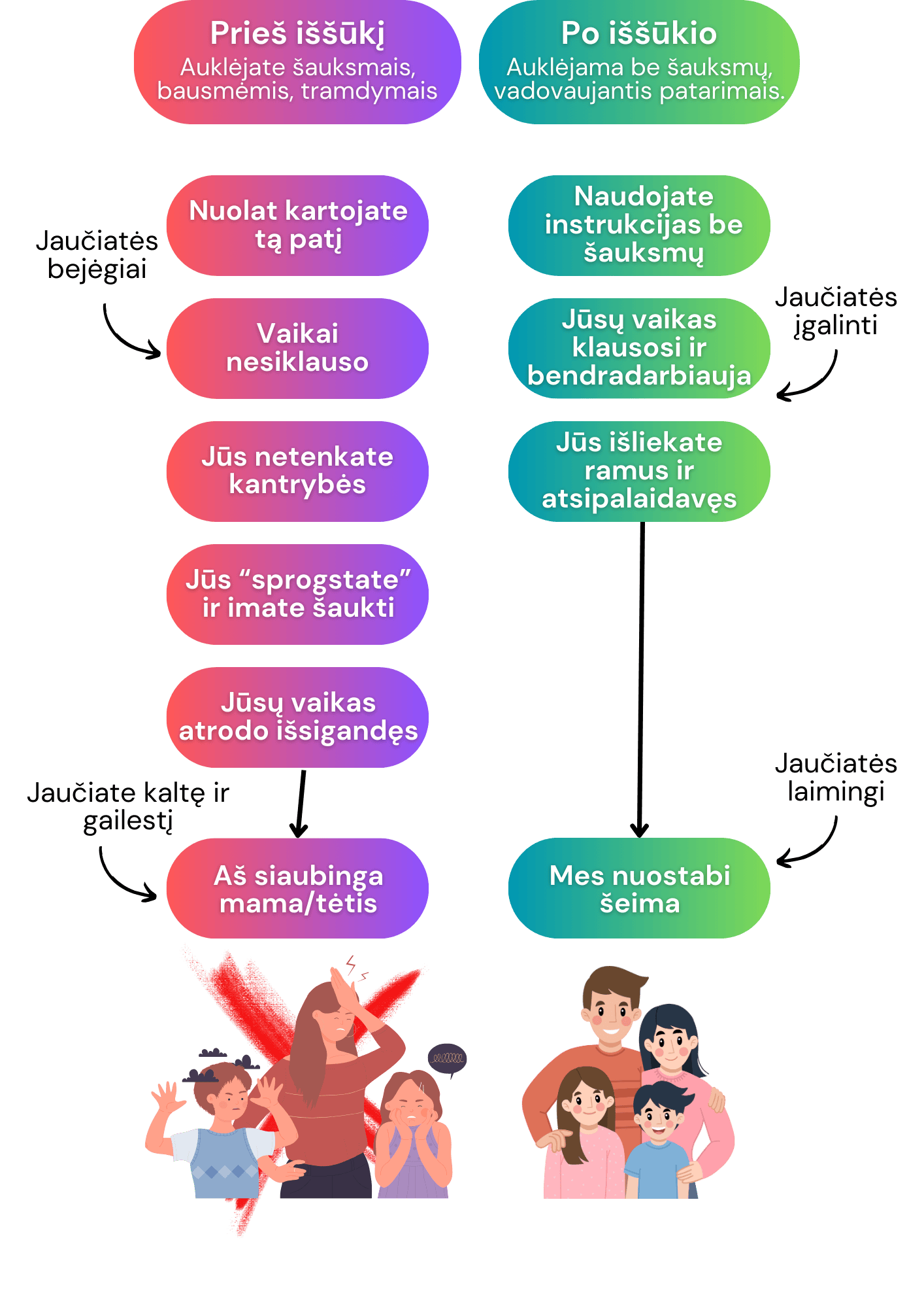 2 DIENA: Ilgalaikės šaukimo pasekmės. Technika tėvams, kuri padės suvaldyti impulsyvias reakcijas, užplūdus sunkiai kontroliuojamoms emocijoms.